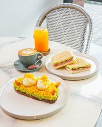 Drinks: Piccolo or Iced Black/Iced White or Reg. Cappuccino or 1 Fruit Juice
